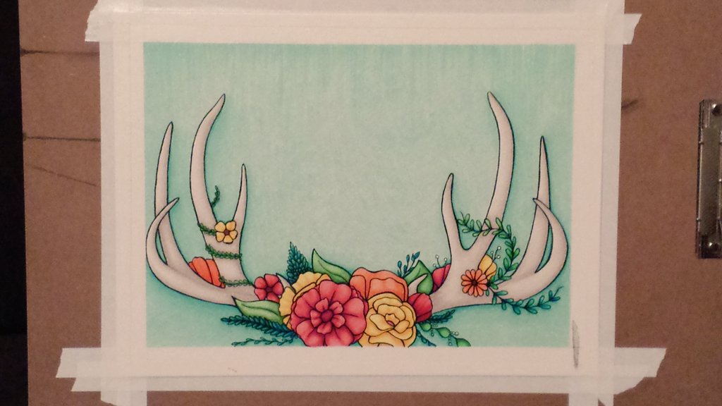 With this idea, I wanted to do something girly, but at the same time, something that could be hung on someone's living room wall even if they're not that girly or outdoorsy. And when I sketched/planned this piece out, I was really into antlers and flowers at the time..so I put them together and BAM!